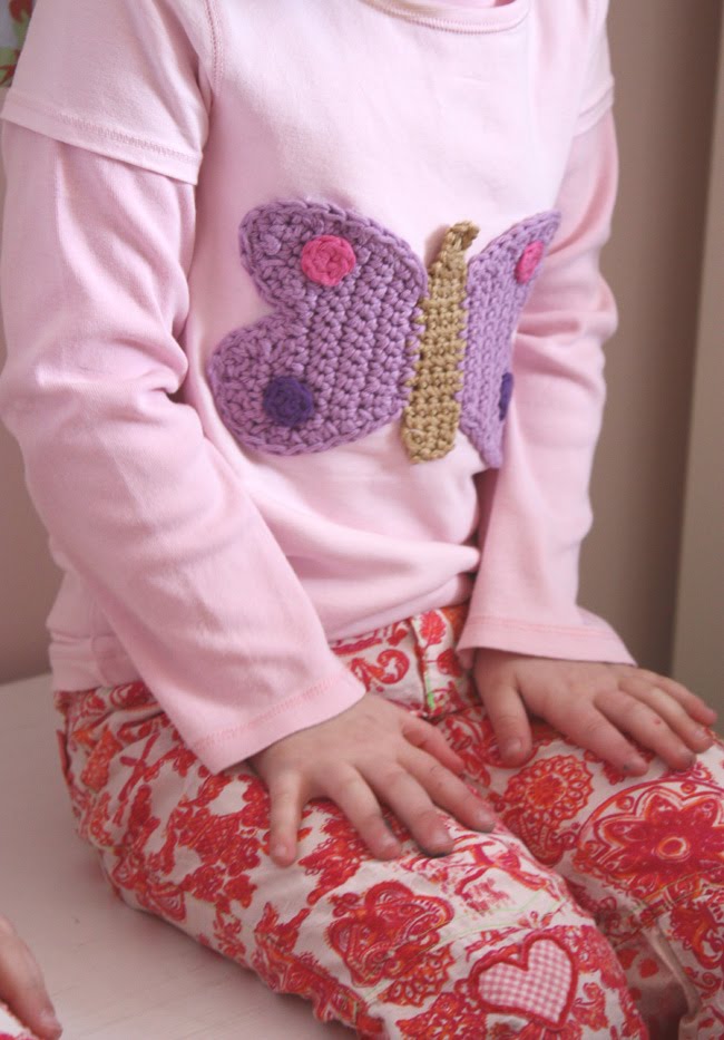 Ach wie süß :o) Wenn ich das wieder so sehe, möchte ich auch gerne häkeln können… Vielleicht sollte ich das wirklich mal probieren… Besonders die Blümchen und der Schmetterling gefallen mit super gut :o)